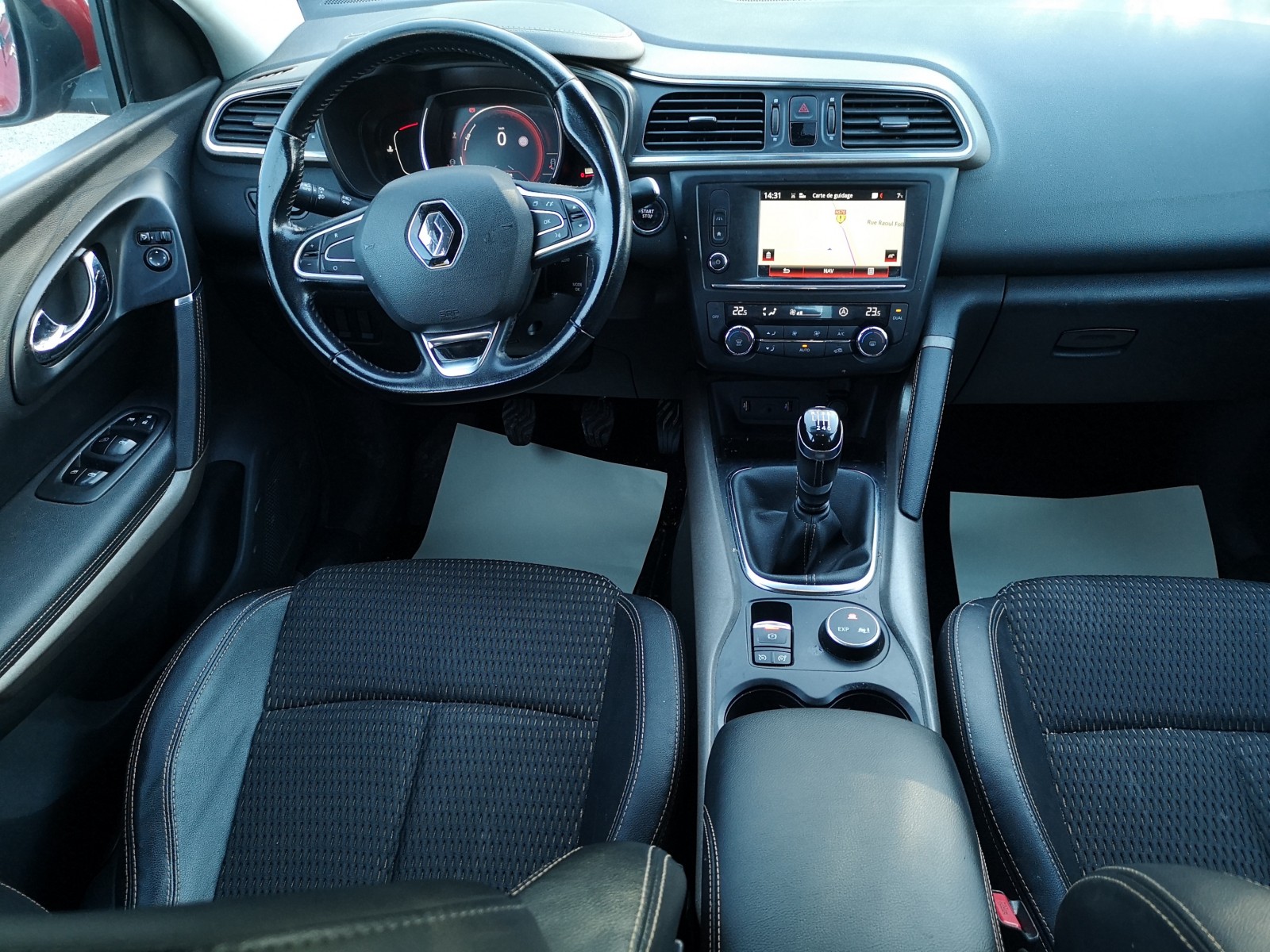 RENAULT KADJAR 1.6 DCI 130 X-MOD : version avec le Grip Control idéal pour la neige et montagne avec performance, confort et sécurité réunis dans un SUV qui allie élégance et modernité. Options & équipement : Extérieur : - Peinture métallisée vernie - Antibrouillards AV - Feux LEDS - Phares à loupe - Jantes alu - Vitrage AR surteinté - Phares + Essuies glace automatiques à capteur de pluie - Radar de Recul Confort : - Intérieur semi-cuir - Climatisation automatique bizones - 4 Vitres électriques - Rétroviseurs réglables électriquement - Régulateur + limiteur de vitesse - Fermeture centralisée avec télécommande - Start & Stop - Volant Multifonctions - Démarrage sans clé Carte main libre Multimédia : - GPS Europe Tactile - Téléphone Bluetooth - Mirror Link CarPlay - Prises 2USB + Auxiliaire + 12V - Autoradio à commande au volant - Ordinateur de bord - Phares + essuie glace automatique - Rétro intérieur électrochrome jour/nuit autom - Rétros rabattables électriquement Sécurité : - ABS (antiblocage des freins) - ESP (système de correction de trajectoire) - Direction assistée - Airbags - Stop & Start - Frein de parking Automatique - Alerte de franchissement de ligne - Lecture des panneaux de signalisation - Indicateur de sous-gonflage Divers : - Grip Control - Phares à loupe - Siège conducteur réglable en hauteur - Volant réglable en hauteur - Volant cuir noir - Fixations ISOFIX - Crochet d'attelage AR Vendu RÉVISÉ avec contrôle technique (CT ok) datant de moins de 6 mois.